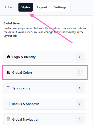 Save or copy your legacy site's global colors: Navigate to Legacy Website Builder > Styles tab > Global Colors to note the existing color palette of your legacy site. This makes it easy to match your current branding in the new builder.