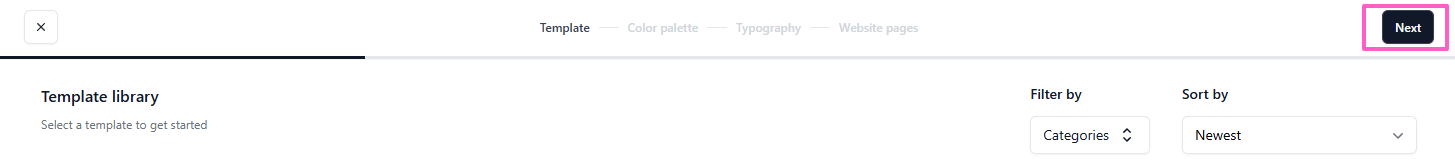 - Once you’ve chosen your template, click the Next button at the top-right to continue.