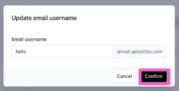 4. In the popup, enter your new email username in the text field. Choose a clear, recognizable name that aligns with your brand or tone.