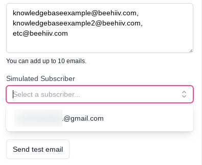 4. If you want to simulate sending the email to a specific subscriber, select a subscriber from the dropdown menu under Simulated Subscriber. Any merge tags in the email will automatically be personalized with that subscriber's information.